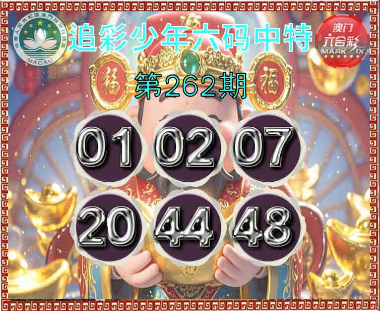 262期:【追彩少年】 ⛩️六码中特⛩️【01.02.07.20.44.48】开:44