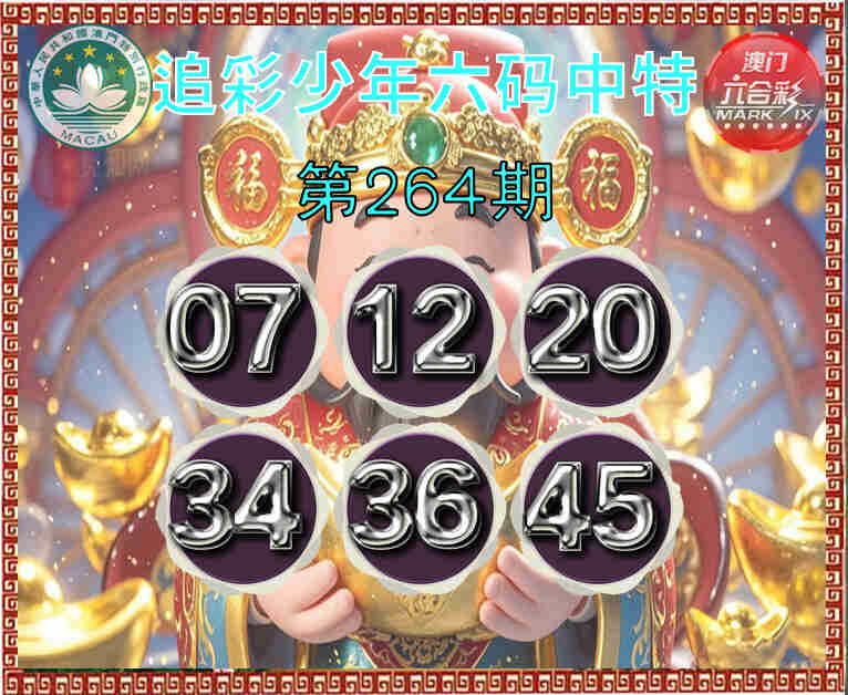 264期:【追彩少年】 ⛩️六码中特⛩️【07.12.20.34.36.45】开:43