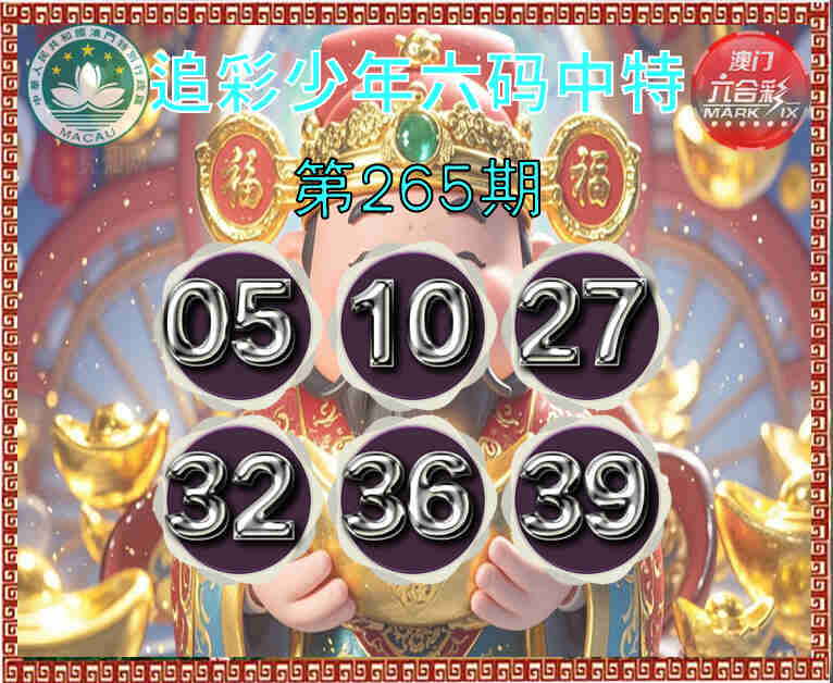 265期:【追彩少年】 ⛩️六码中特⛩️【05.10.27.32.36.39】开:10