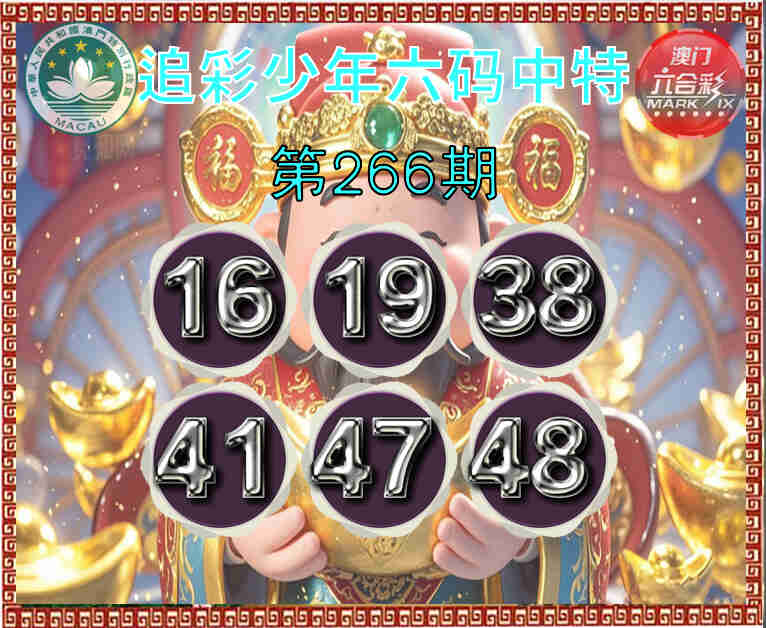 266期:【追彩少年】 ⛩️六码中特⛩️【16.19.38.41.47.48】开:41