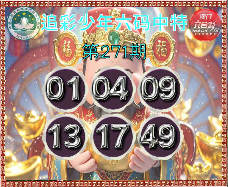271期:【追彩少年】 ⛩️六码中特⛩️【01.04.09.13.17.49】开:06