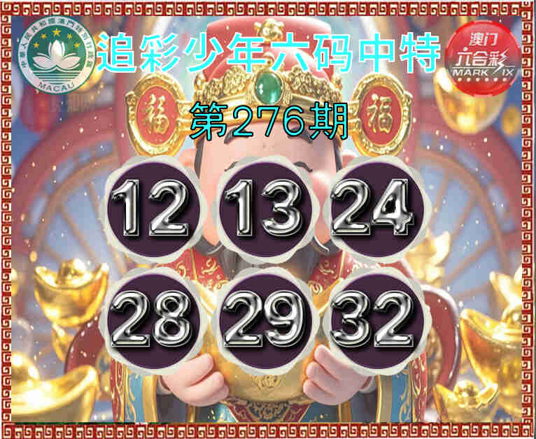 276期:【追彩少年】 ⛩️六码中特⛩️【12.13.24.28.29.32】开:09