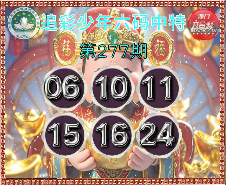 277期:【追彩少年】 ⛩️六码中特⛩️【06.10.11.15.16.24】开:16