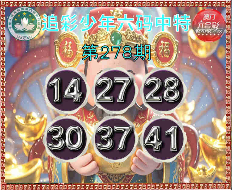 278期:【追彩少年】 ⛩️六码中特⛩️【14.27.28.30.37.41】开:28