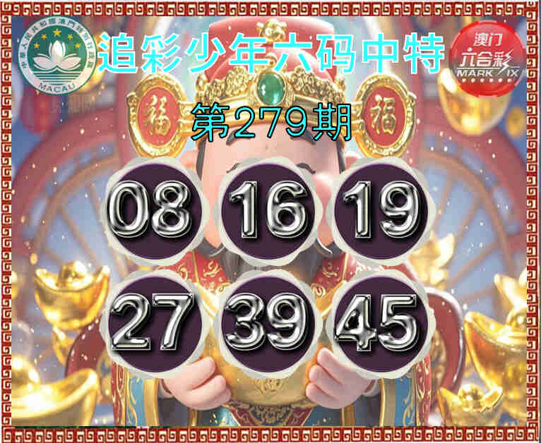 279期:【追彩少年】 ⛩️六码中特⛩️【08.16.19.27.39.45】开:27