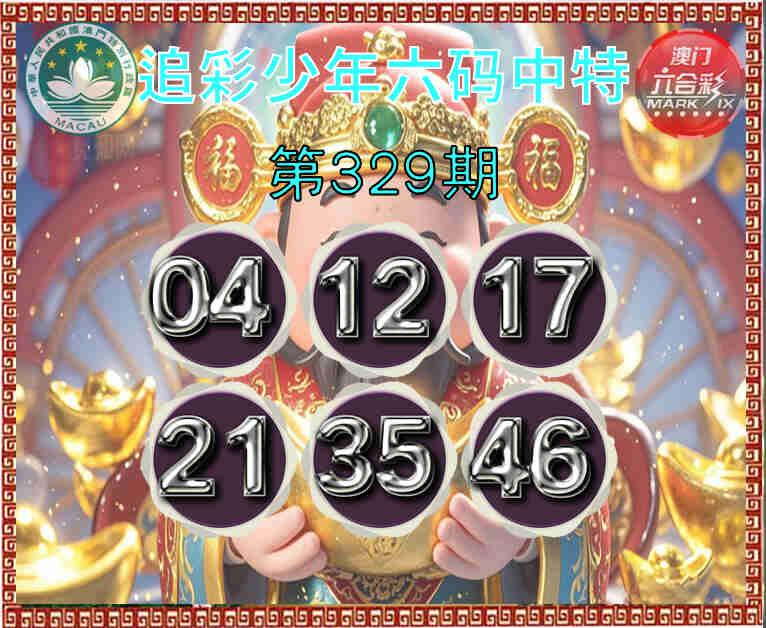 329期:【追彩少年】 ⛩️六码中特⛩️【04.12.17.21.35.46】开:17