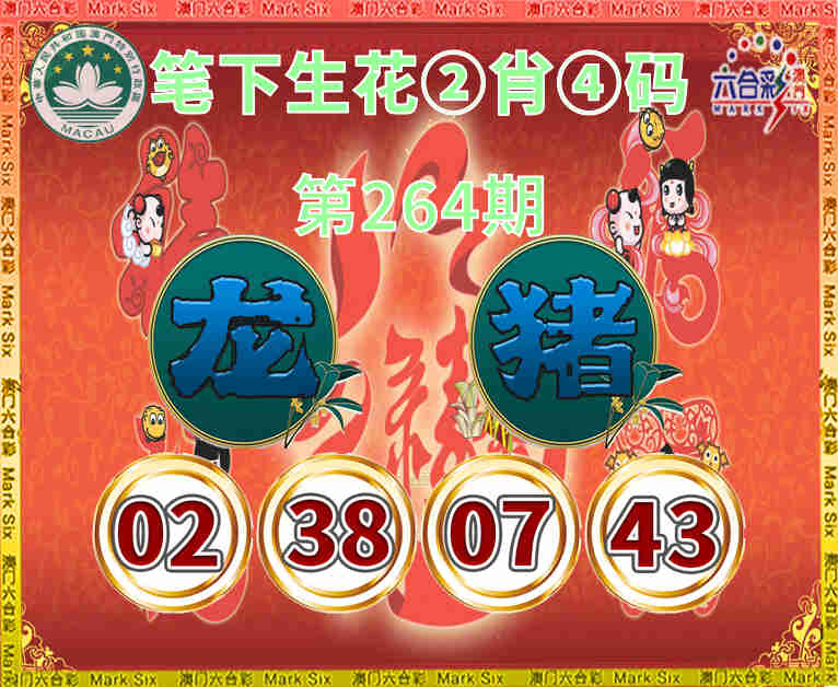264期:『笔下生花』 👈②肖④码👈【龙】【02.38.07.43】开:猪43