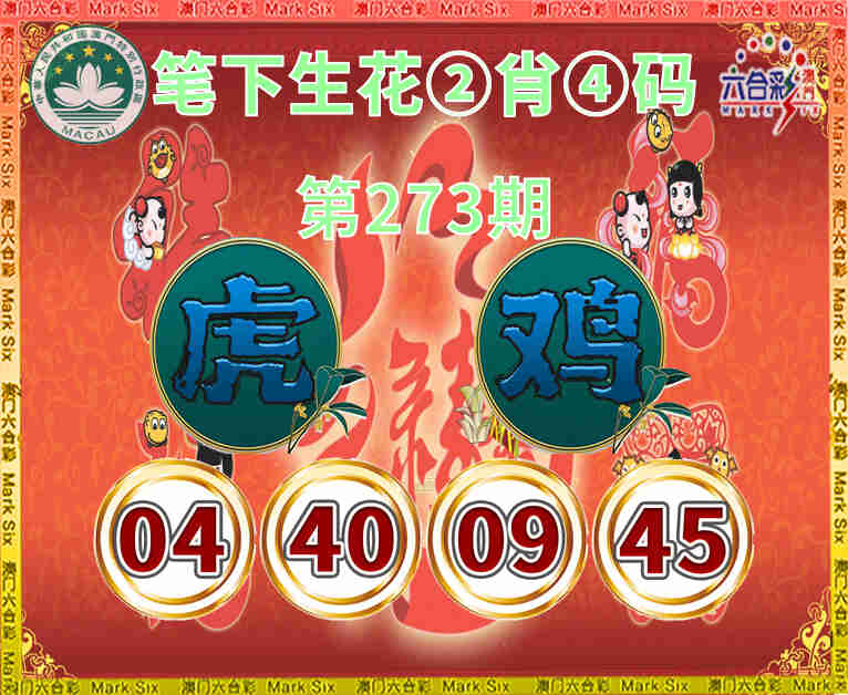273期:『笔下生花』 👈②肖④码👈【鸡】【04.40.09.45】开:虎04