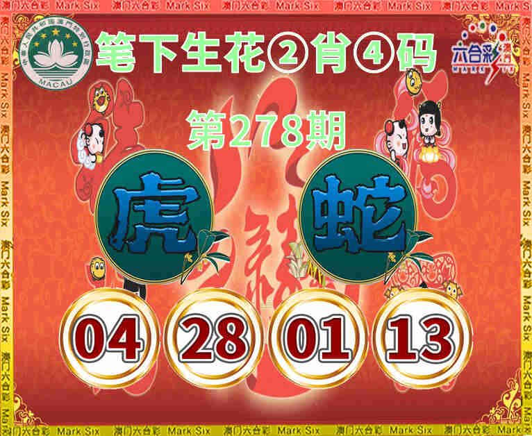278期:『笔下生花』 👈②肖④码👈【蛇】【04.28.01.13】开:虎28
