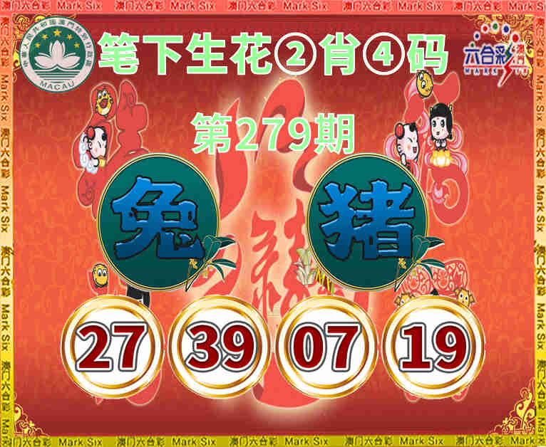 279期:『笔下生花』 👈②肖④码👈【猪】【27.39.07.19】开:兔27